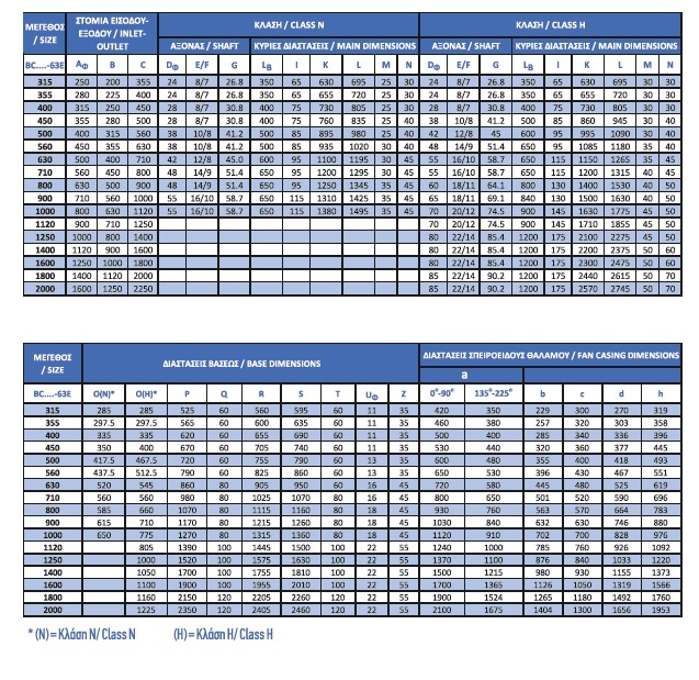 ΦΥΓΟΚΕΝΤΡΙΚΟΙ ΑΝΕΜΙΣΤΗΡΕΣ BC - ΔΙΑΣΤΑΣΕΙΣ ΣΕΙΡΑΣ BC 63E