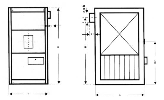 A | B | H | A1 | B1 | H1 | H2 | a | b | min. παροχή ανεμιστήρα / min. volume flow of the fan (m³/h) |