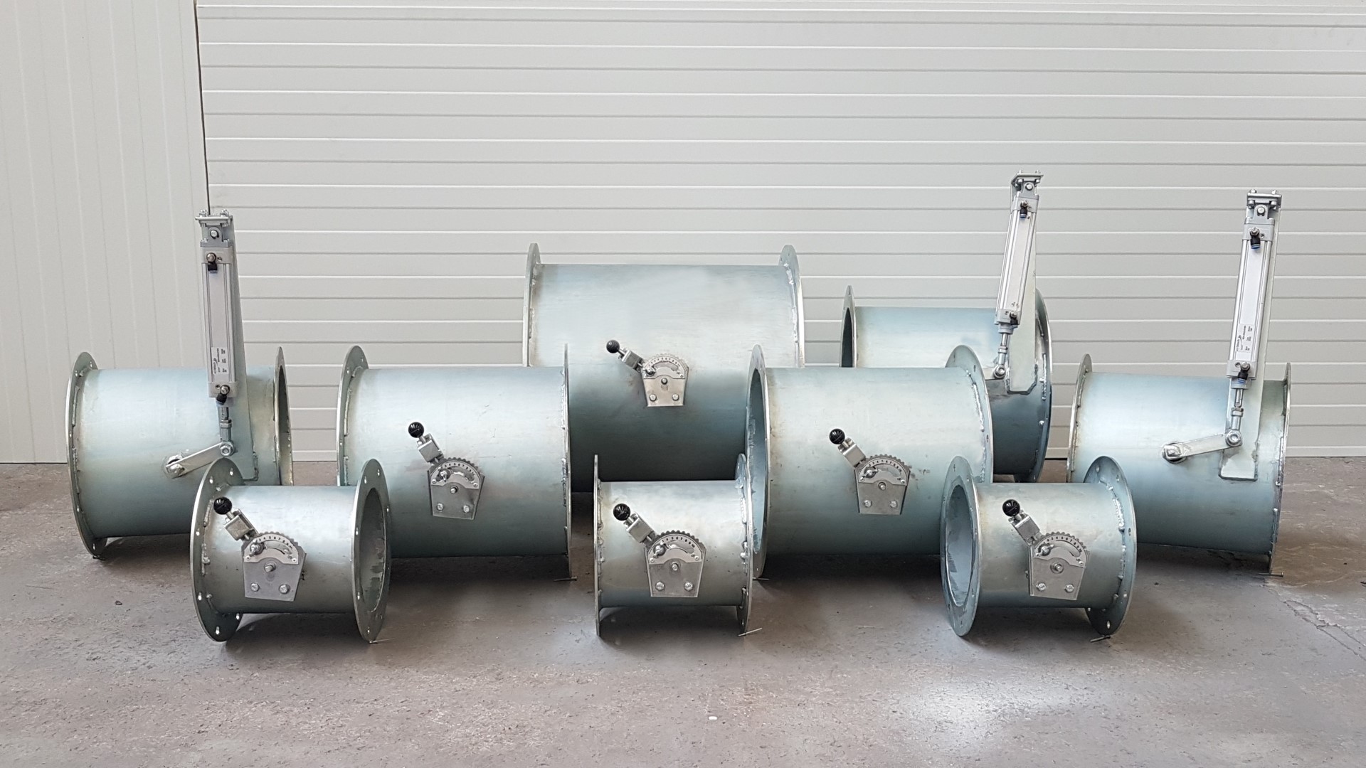 Μονόφυλλα διαφράγματα ρύθμισης της παροχής το αέρα για τοποθέτηση σε αεραγωγό, σε τσιμεντοβιομηχανία στην Κύπρο.