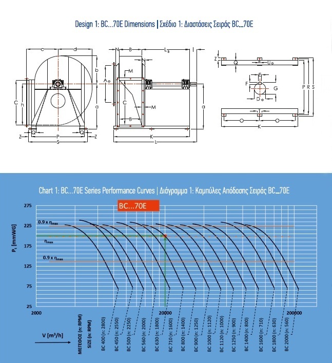 CENTRIFUGAL FANS-DIMENSIONS OF BC 70E